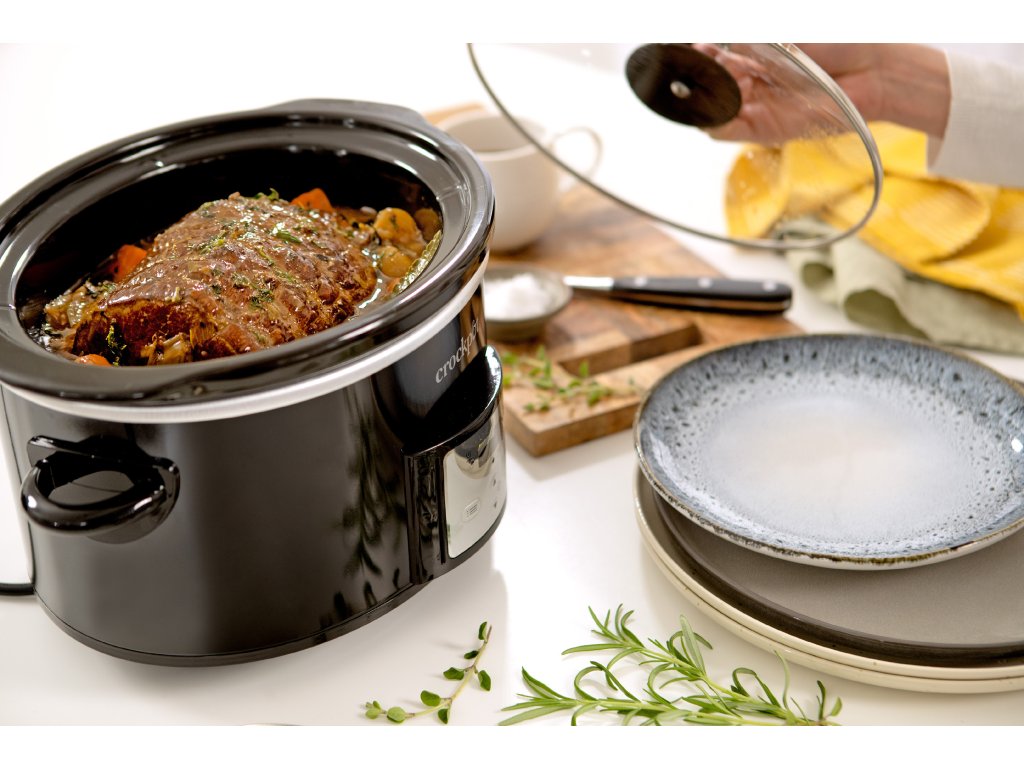 Pomalý hrnec CSC060X disponuje odklápěcí skleněnou poklicí, takže při přípravě jídla není potřeba s ní složitě manipulovat a stačí ji jen odklopit. Z uchycení však lze samozřejmě jednoduše vyjmout, což usnadňuje údržbu. Ta je u pomalého hrnce Crockpot velmi jednoduchá – samotnou nádobu i poklici lze bez obav mýt v myčce nádobí.